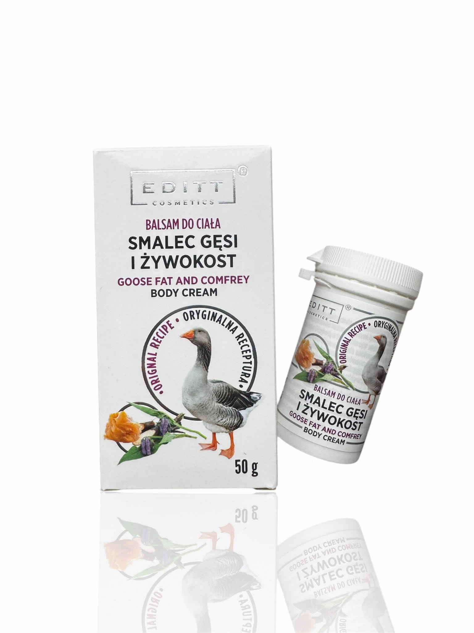 Skład: Petrolatum, Goose Fat, Lanolin, SymphytumOfficinale Leaf Extract, Glycerin, Aqua, Sodium Benzoate, Potassium Sorbate