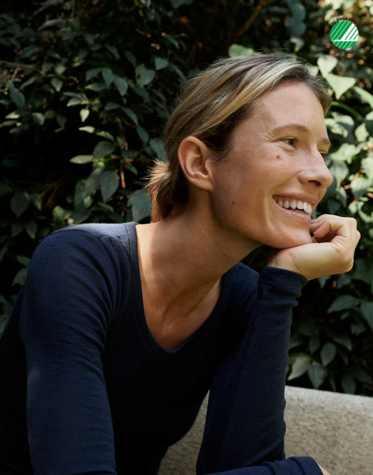 Wykonana jest z miękkiej organicznej wełny merynosów dzianej splotem 1x1. Taka technika dziania daje gładką równą powierzchnię o drobnej żeberkowej strukturze. Zapewnia średnią rozciągliwość, wygodę i dużą swobodę ruchów. Sprawia też, że lekko rozciągnięte podczas noszenia włókna skurczą się ponownie po praniu.