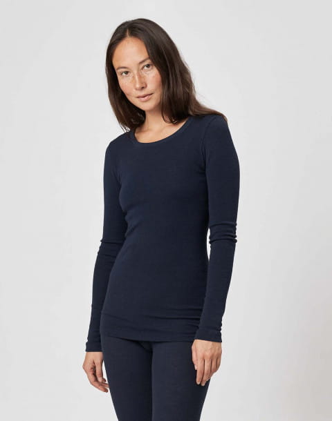 Koszulka damska z wełny merynosów (100%) - długie rękawy - morski granat - prod. DILLING