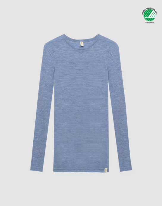 Koszulka damska z wełny merynosów (100%) - długie rękawy - wyższy dekolt - błękitny melanż - prod. DILLING
