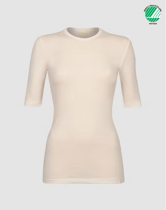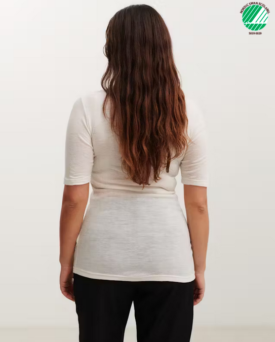 Koszulka damska z wełny merynosów (100%) -wyższy dekolt - rękawy do łokcia - kremowa - prod. DILLING