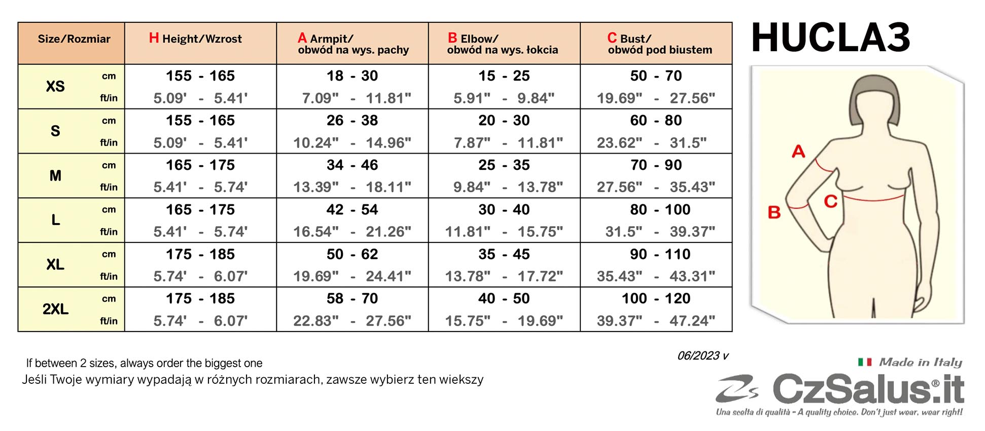 Prosimy o skorzystanie z poniższej tabeli przy doborze rozmiaru.
