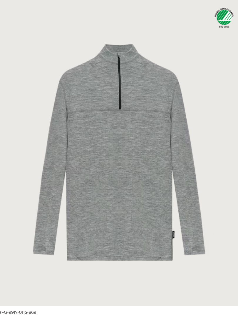 Koszulka/półgolf męski z suwakiem z wełny merynosów (100%) - delikatny dopasowujący splot - szary - prod. DILLING