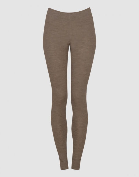 Legginsy damskie z wełny merynosów (100%) - szeroka wygodna gumka w pasie - ciemnobeżowe - prod. DILLING