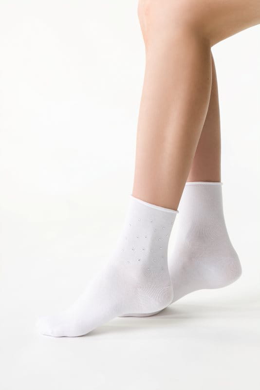 Damskie skarpetki z linii COMET z najwyższej jakości delikatnej certyfikowanej bawełny z aplikacją z perełek
