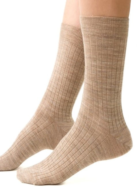 Skarpety męskie z cienkiej wełny merynosów (79%) - delikatny prążek - bezuciskowe - beżowe - Steven