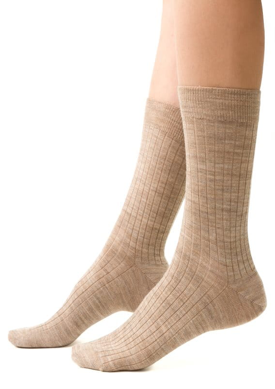 Skarpety damskie z cienkiej wełny merynosów (79%) - delikatny prążek - bezuciskowe - beżowe - Steven