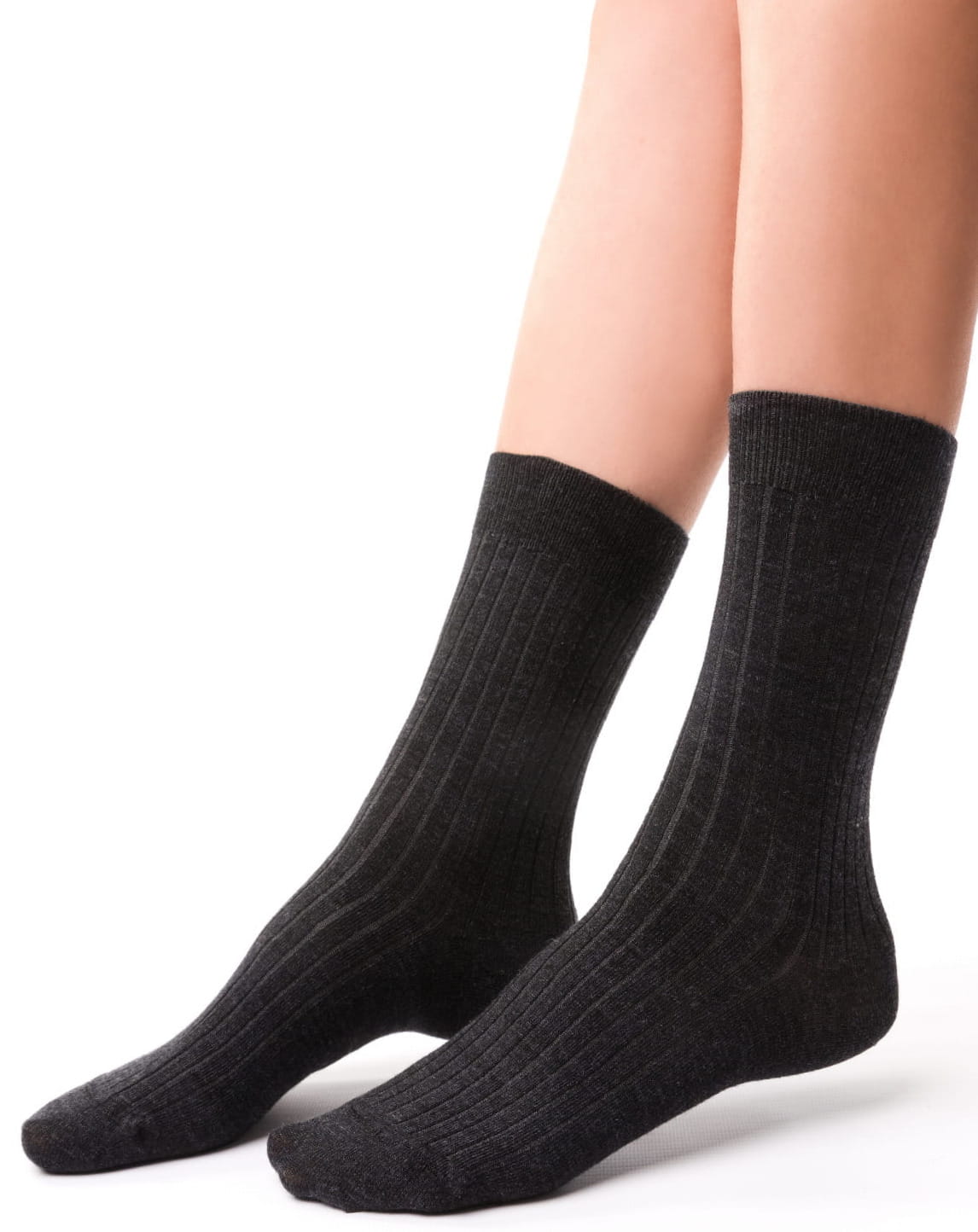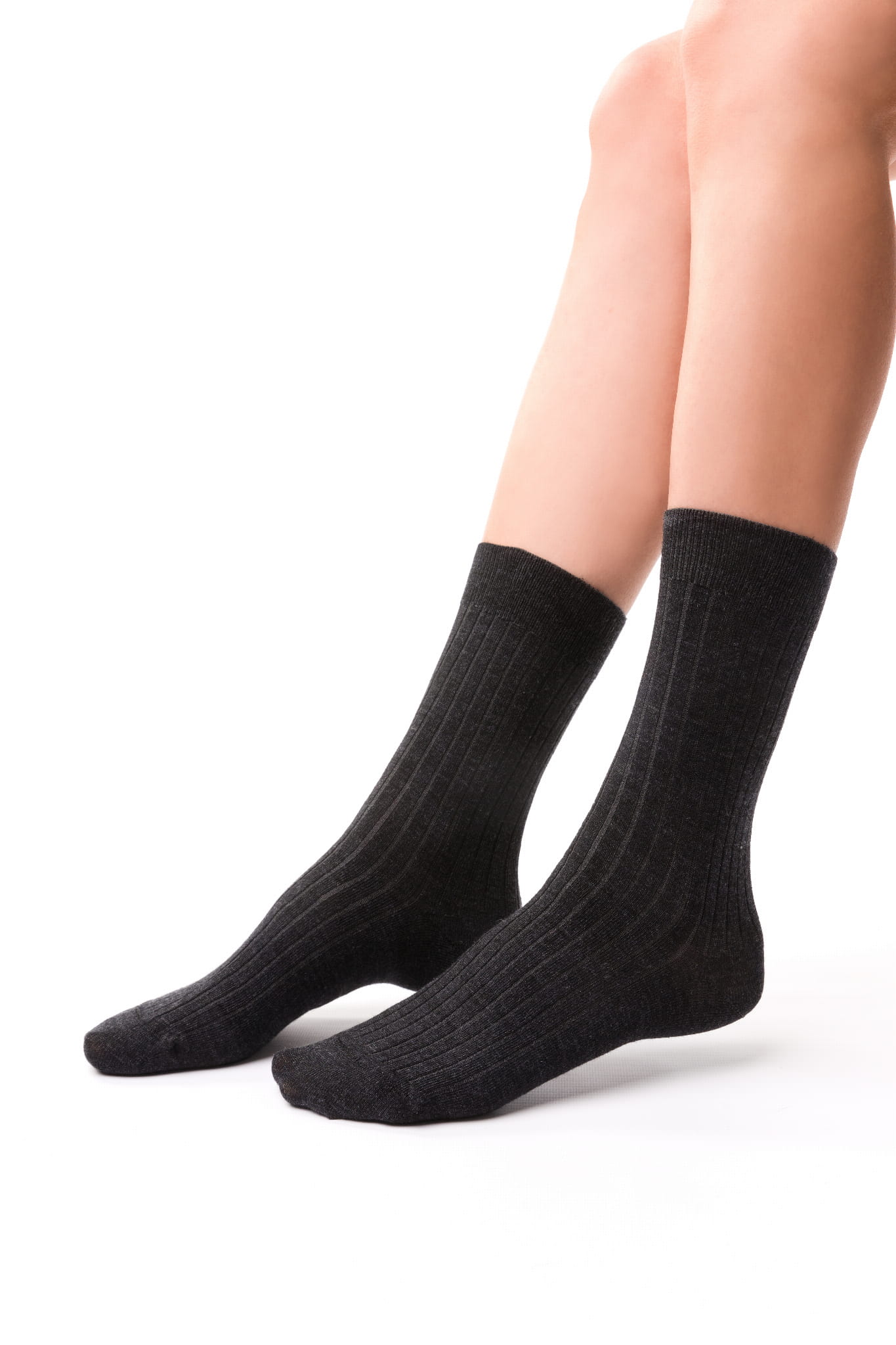 Skarpety damskie z cienkiej wełny merynosów (79%) - delikatny prążek - bezuciskowe - grafitowe - Steven