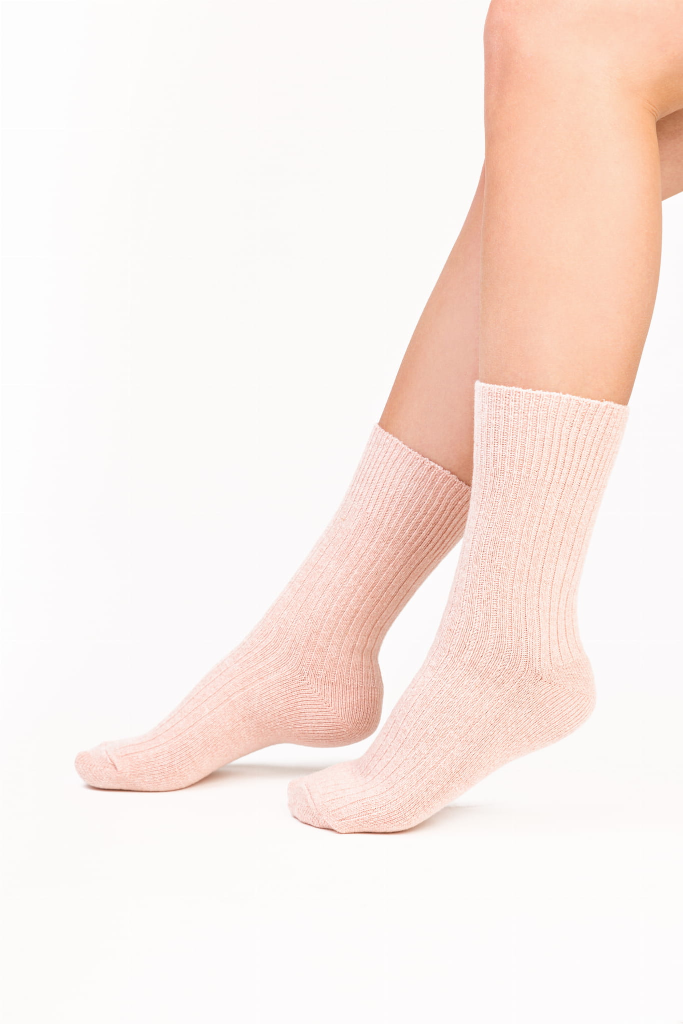 Skarpety damskie z wełny (72%) - prążek - jasny róż - Steven