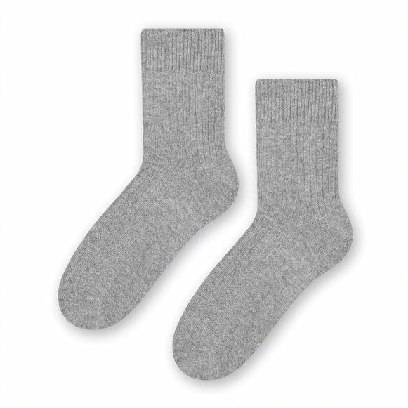 Skarpety damskie z wełny (72%) - prążek - szary melanż - Steven