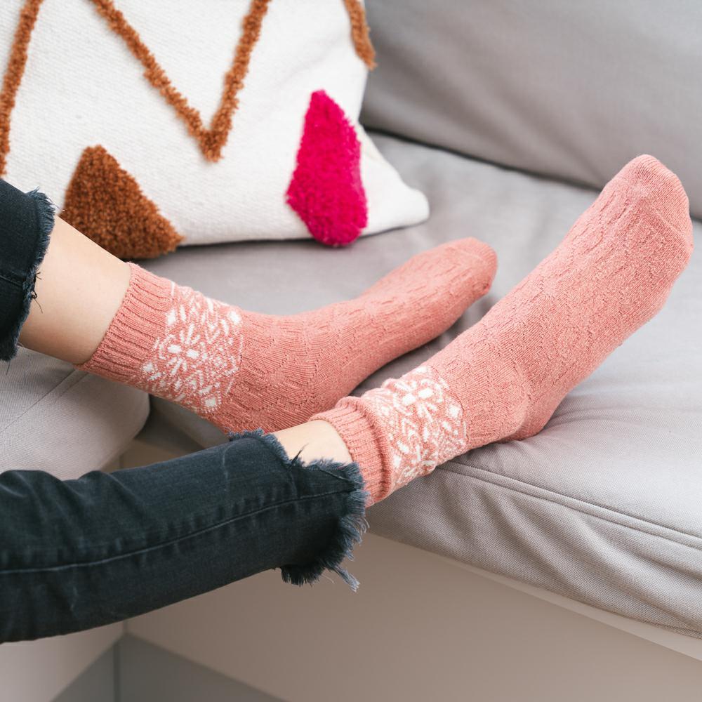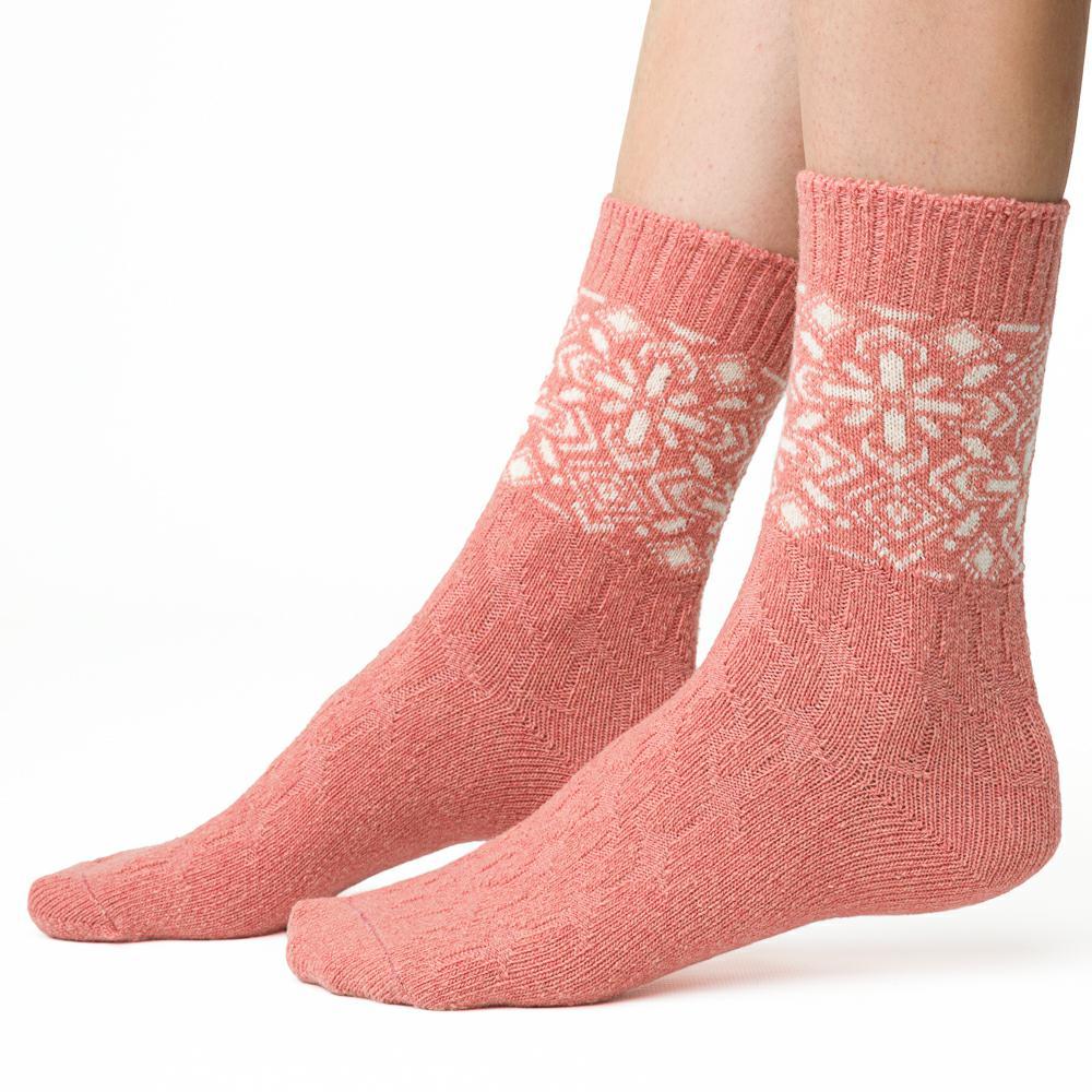 Skarpety damskie z wełny (72%) - ze wzorem - łososiowy róż - Steven