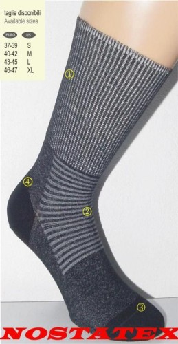 Srebrna nić NOSTATEX z warstwą czystego srebra jest trwałym rozwiązaniem, odpornym na zerwania, przetarcia czy spranie. W skarpetach CzSalus dla diabetyków cała wewnętrzna część skarpety, będąca w bezpośrednim kontakcie ze skórą jest wykonana z dodatkiem włókna NOSTATEX, co zapewnia stopie wszelkie korzystne właściwości srebrnego włókna. Ponadto skarpety te są produkowane według specjalnej technologii z płaskim szwem w obrębie palców, nie powodują żadnego ucisku, co zapobiega wszelkim problemom związanym z krążeniem krwi oraz wrażliwą skórą.
