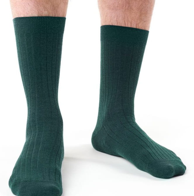 Skarpety męskie z cienkiej wełny merynosów (79%) - delikatny prążek - bezuciskowe - butelkowa zieleń - Steven