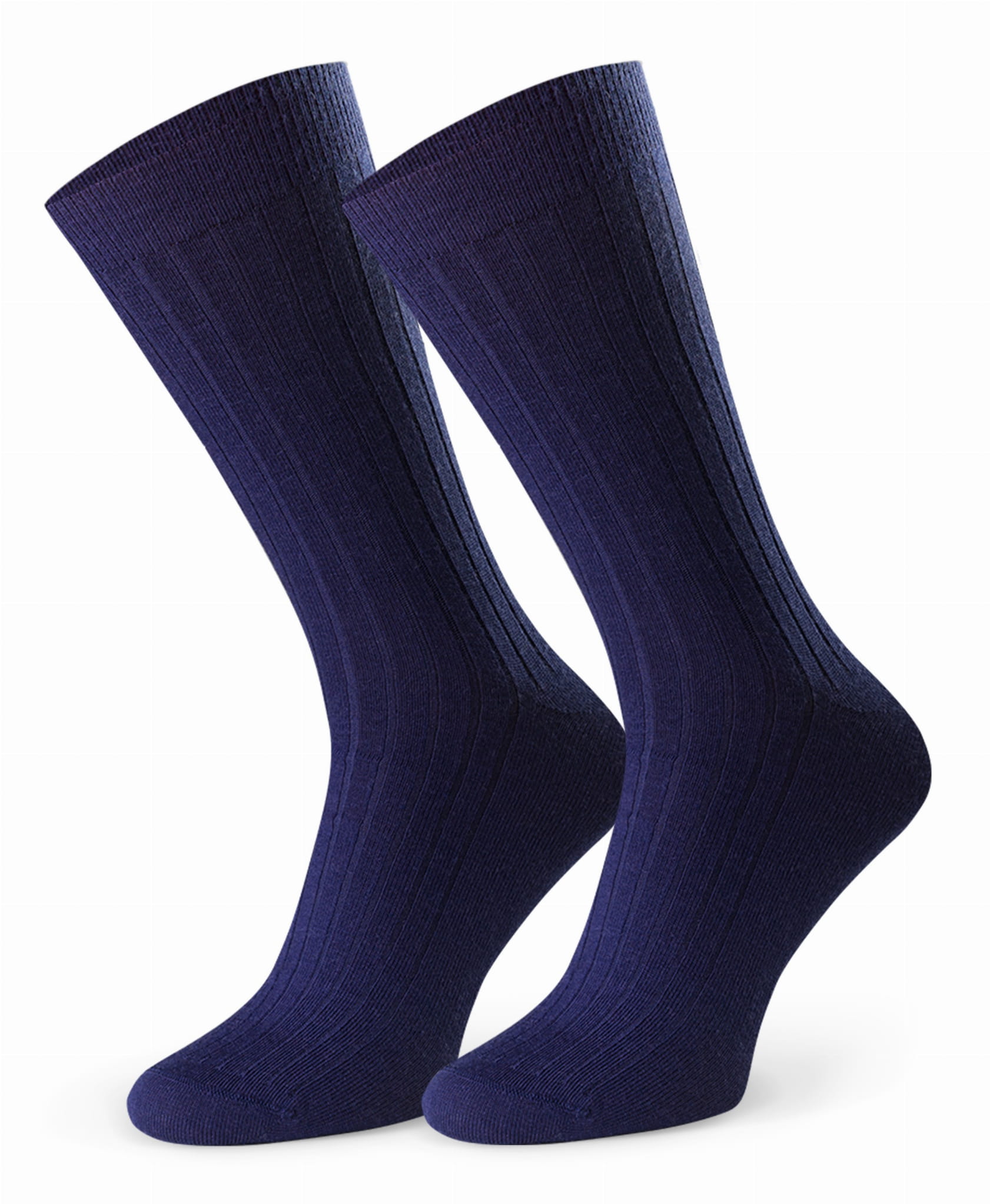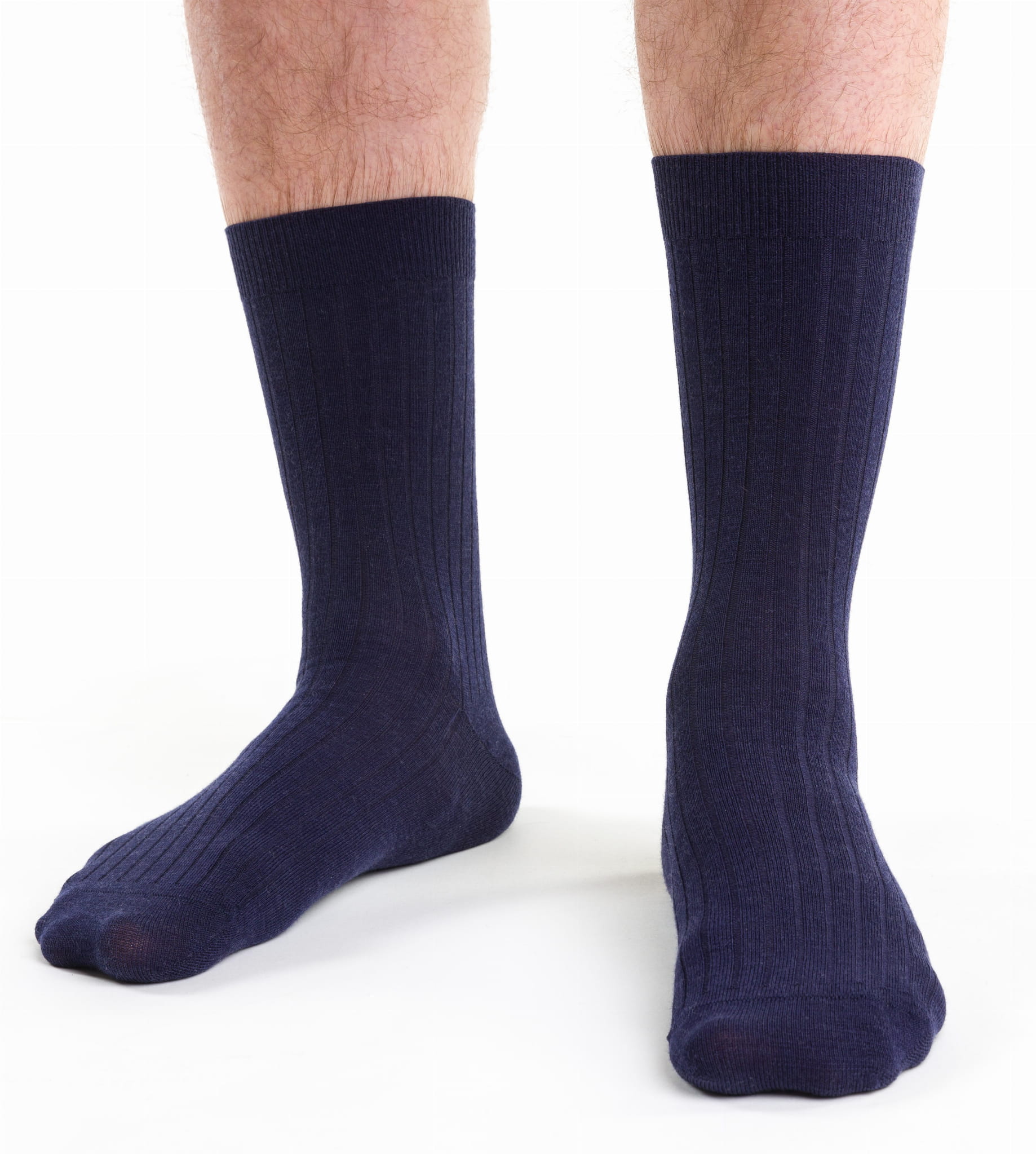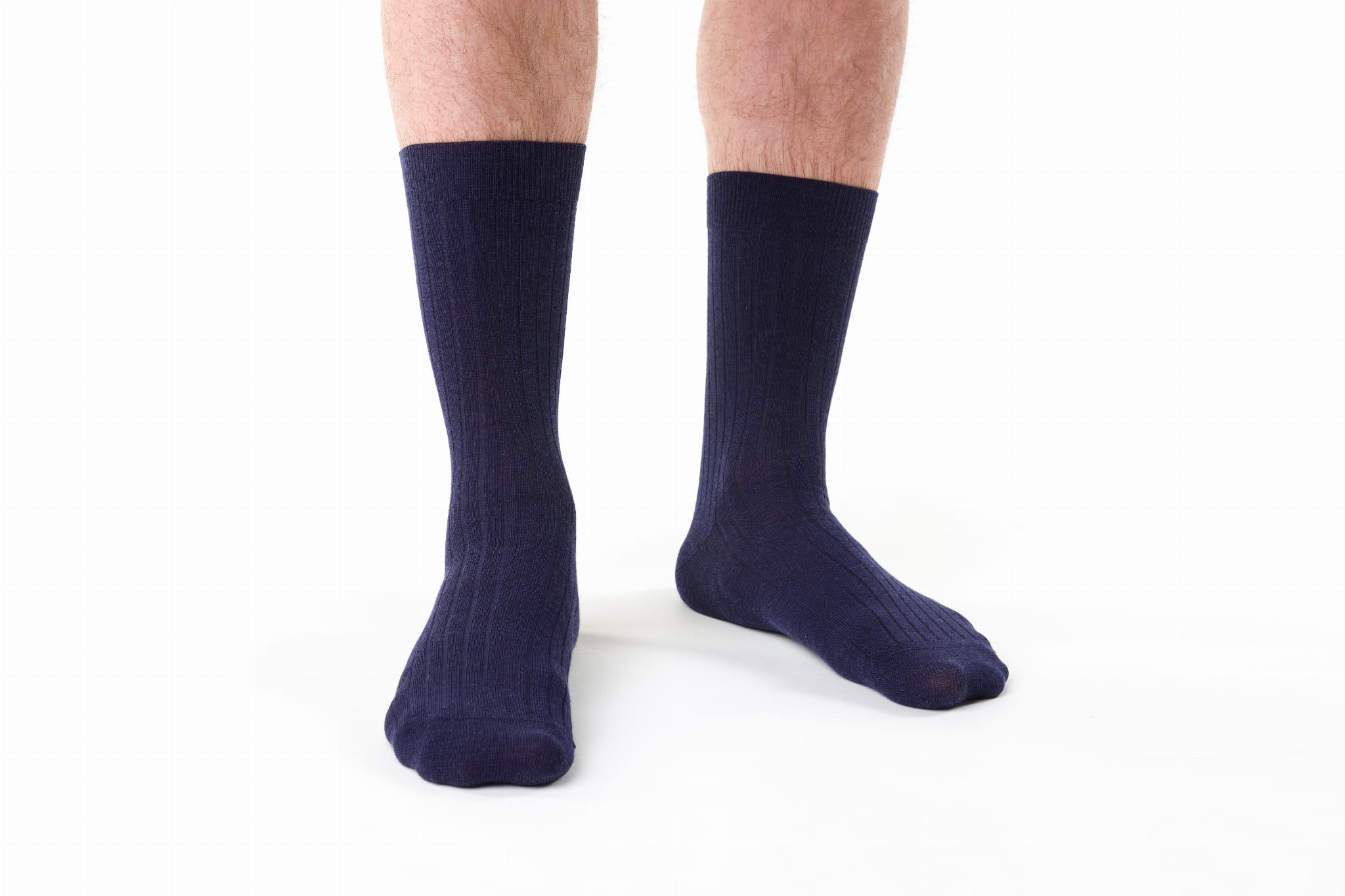 Skarpety męskie z cienkiej wełny merynosów (79%) - delikatny prążek - bezuciskowe - granatowe - Steven