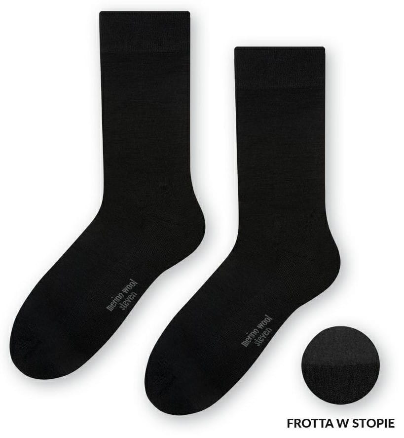 Skarpety męskie z wełny merynosów (77%) - wełniane frotte pod stopami - bezszwowe - czarne - Steven