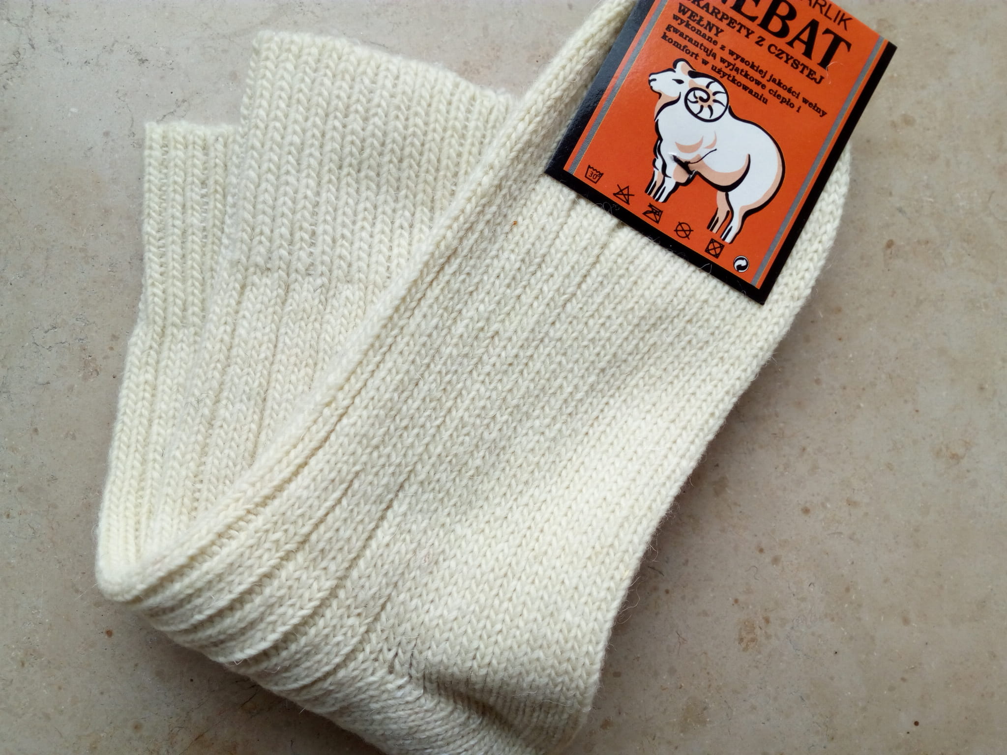 Skarpety rozgrzewające wełniane (99%) THERMAL - rozm. 43-46 kremowe - prod. Nebat