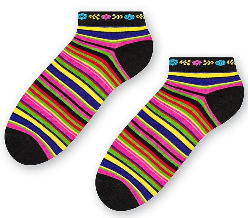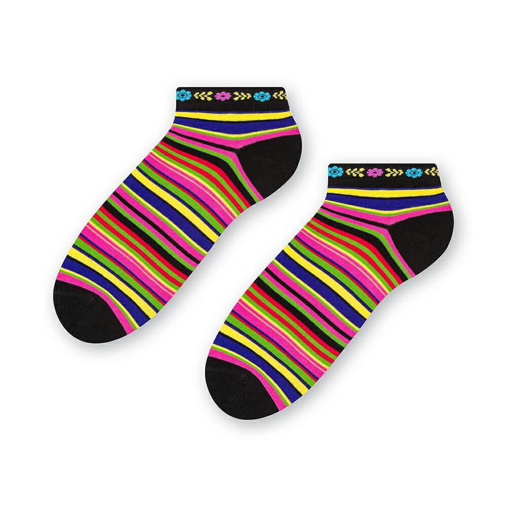Skarpety - stopki damskie bawełniane - czarnoróżowe - wzór łowicki - Steven