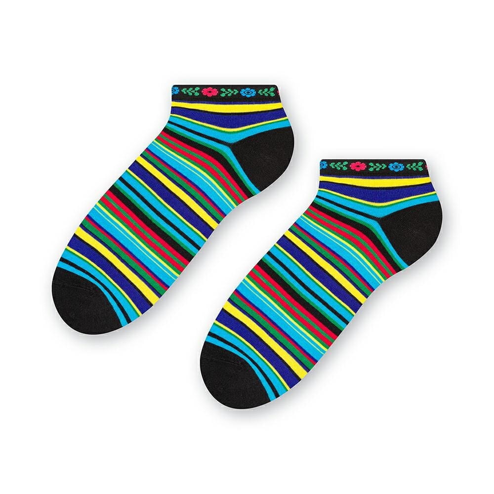 Skarpety - stopki damskie bawełniane - czarnoturkusowe - wzór łowicki - Steven